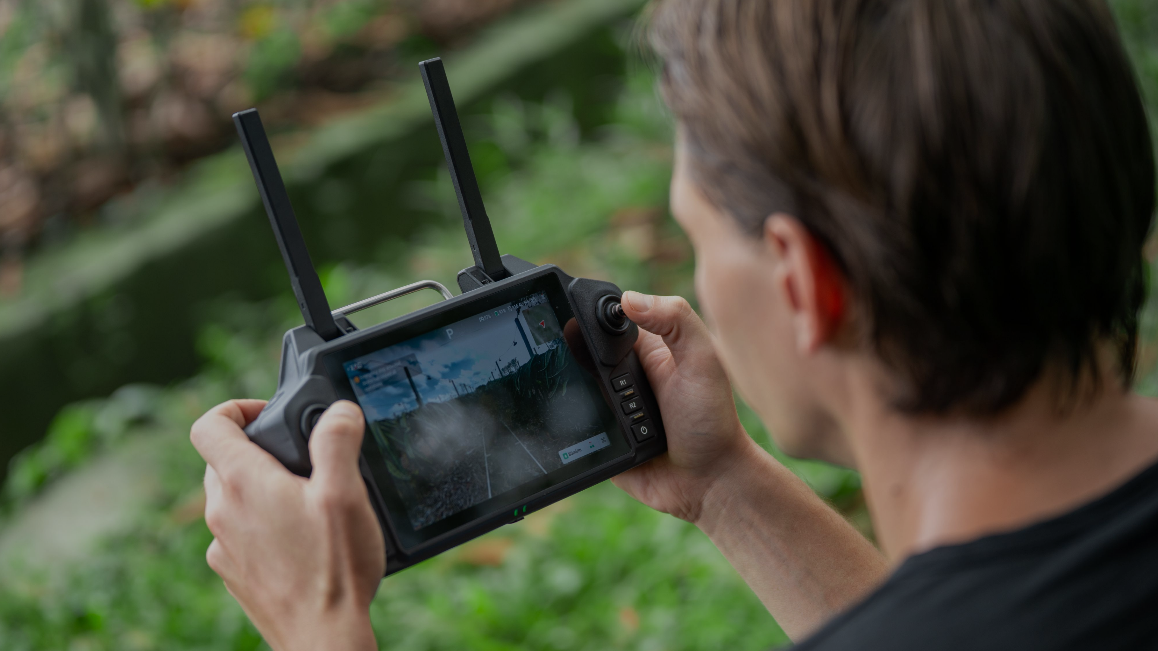 XRC 5 smart remote controller with 7-inch touchscreen, HD FPV camera with 150° field of view, and CM-level RTK positioning for autonomous operation.