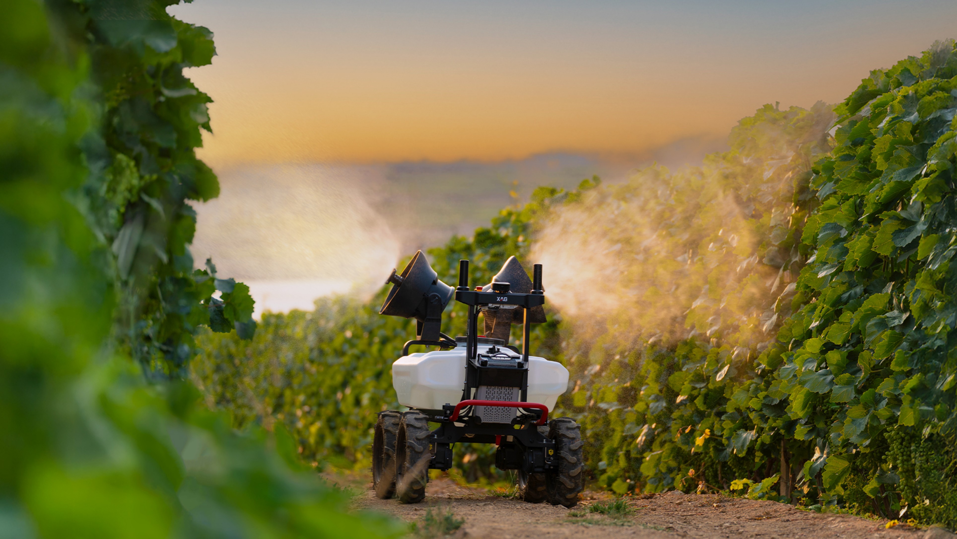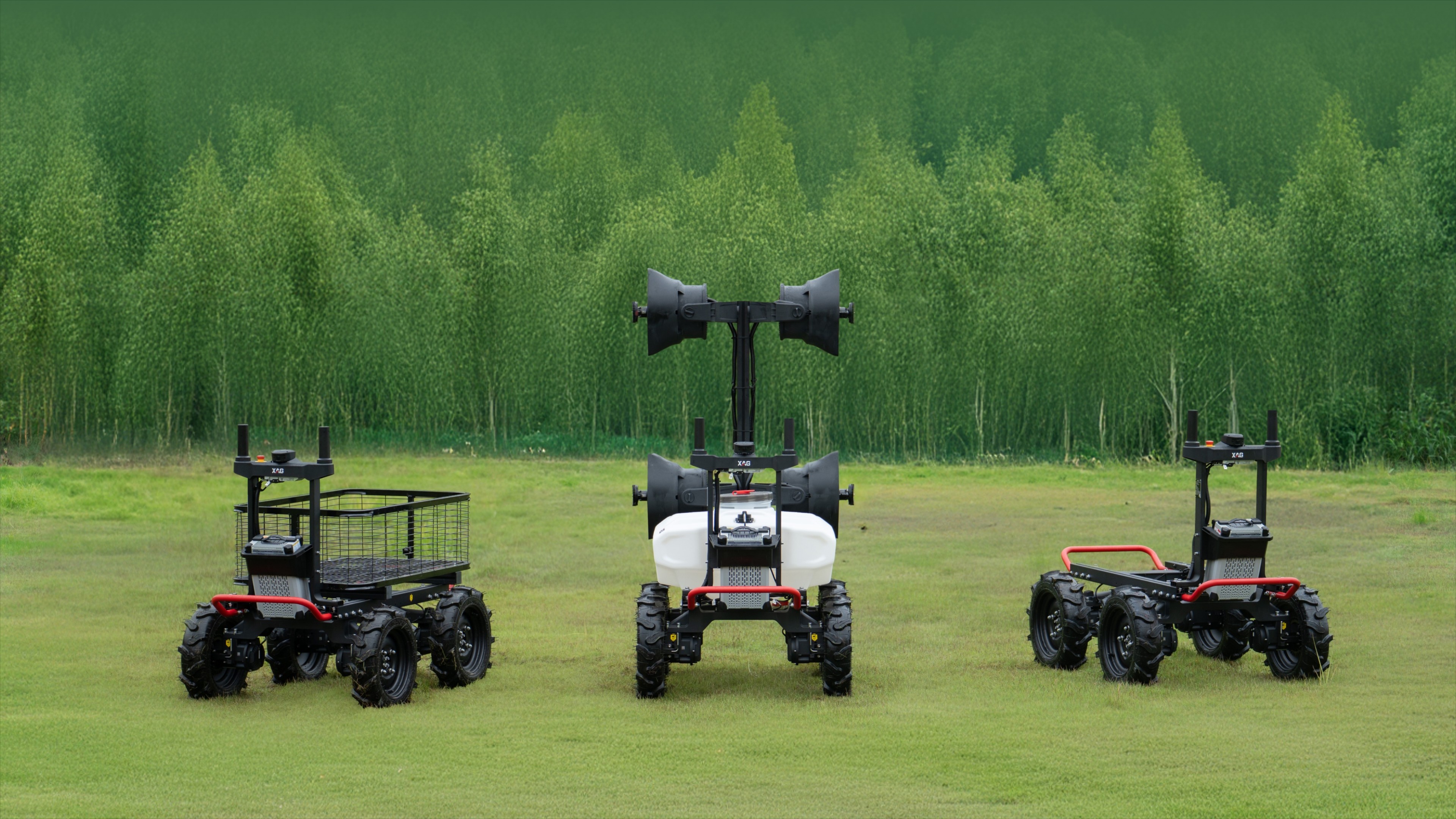 A compact four-wheel drive agricultural rover designed for precise, uniform spraying in orchards and greenhouses. Navigate narrow rows and rough terrain with simple remote control.